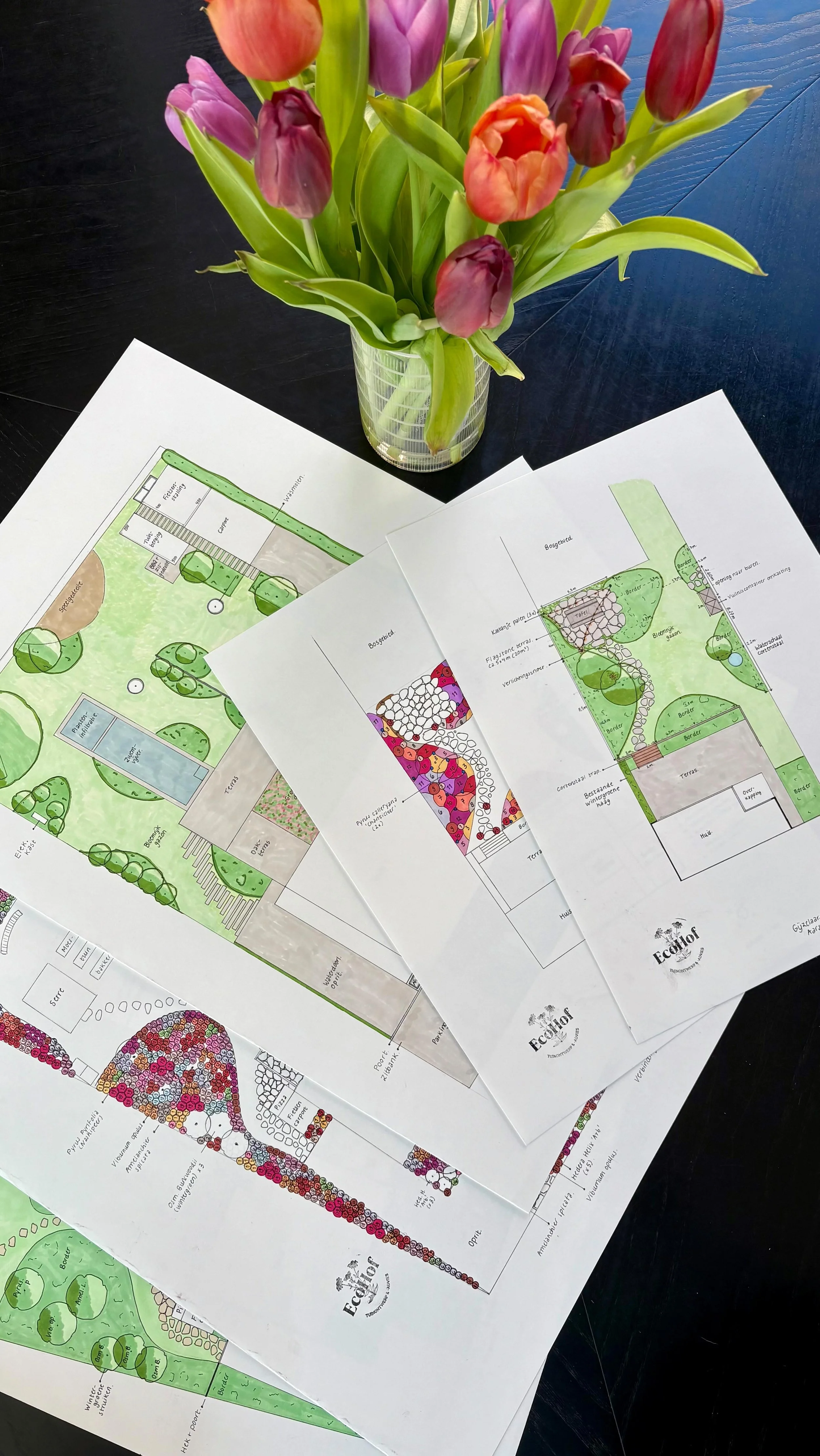 Mijn ontwerpen combineren sierwaarde en eetbaarheid, met aandacht voor schoonheid én functionaliteit. Elk plan wordt met de hand getekend en gebundeld in een duidelijke digitale gids vol planteninfo en persoonlijk advies.